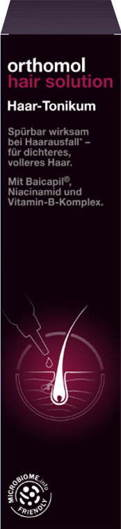 Orthomol Hair Solution содержит разнообразные аминокислоты, витамины и минералы, а также натуральный комплекс активных ингредиентов Baicapil®, включающий экстракты корня шлемника байкальского, сои и зародышей пшеницы.